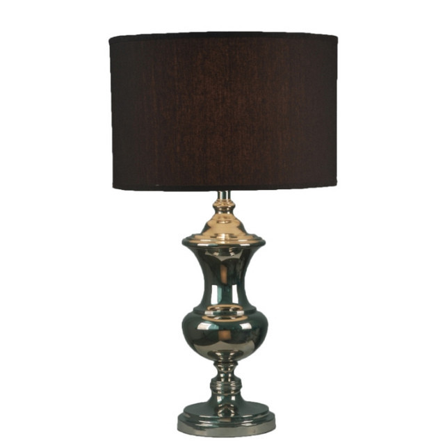 The Serena table lamp gets a second glance every time it is used in an interior situation. This nickel finished lamp with dark shade is always worth consideration.
